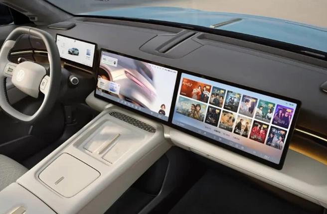 3月9日,与众 08 的内饰官图发布。从官方发布的图片可以看到,新车采用环抱式座舱布局,内饰由两块 14.96 英寸屏幕组成,形成贯穿式联屏,使得车内看起来科技感十足。副驾位置据官方消息还提供 14