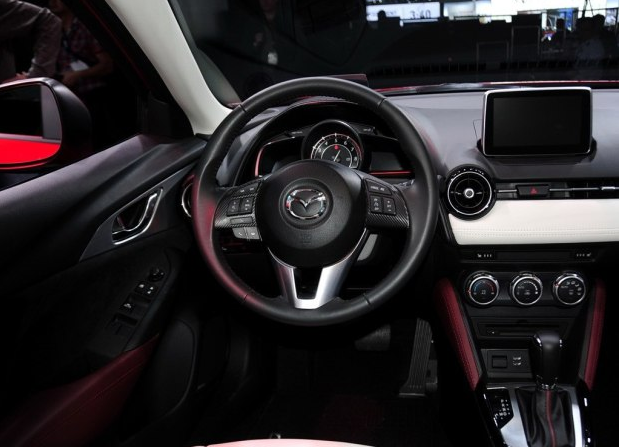 在配置方面,据了解,马自达CX-3在美国市场有三种配置版本可选,入门级车型装有巡航控制、后视摄像头、车载蓝牙、马自达CONNECT信息娱乐系统、7英寸显示屏等;中配版本采用了16英寸轮圈、皮质座椅、真皮包裹的方向盘、中央扶手、前排座椅加热功能等;顶配车型装有LED前大灯、18英寸轮圈、电动天窗、GPS导航、BOSE音响系统等。