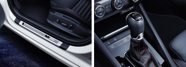 在车型内饰方面,全新明锐RS 230车内以黑色为主体颜色,车内真皮座椅以及方向盘等多处则采用了红色或灰色的缝线装饰,十分富有激情。在一些细节处,比如座椅头枕、挡把以及门槛部位也都有彩色的“RS”标识、
