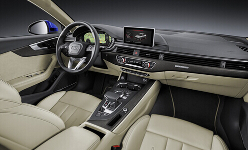 在车型内饰方面,奥迪全新A4采用了全液晶的虚拟驾驶舱,在仪表盘上就可以显示导航以及其它车辆信息。另外,该车采用了独立立体的显示屏,并配备全新的电子换挡杆以及自适应巡航控制系统等。