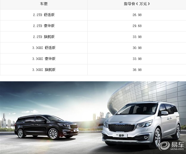 起亚的大型MPV-嘉华,是在其原型车韩国起亚Carnival的基础上改进而来的。Carnival一词最早源自于拉丁语,后演变用于英语使用,代表“庆典、大型庆祝活动”的意味。日前,起亚进口MPV嘉华正式上市,新车此次共推出2个排量共6款车型,售价区间为26.98万-38.98万元,具体车型及售价详见下表。