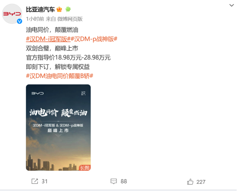 就在5月18日,比亚迪汽车官宣汉DM-i冠军版和汉DM-p战神版正式上市。新车共推出六种车型,汉DM-i冠军版价格在18.98万-24.9万,121KM精英型18.98万元,121KM尊贵型19.98