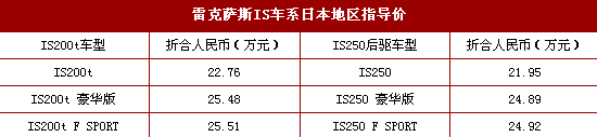 近日,雷克萨斯在日本地区宣布IS200t将于8月3日上市,并公布3款IS200t的价格为454.40-509.20万日元,约合22.76-25.51万人民币。值得关注的是,在日本地区IS200t的价格比新上市的2015款IS250要便宜。