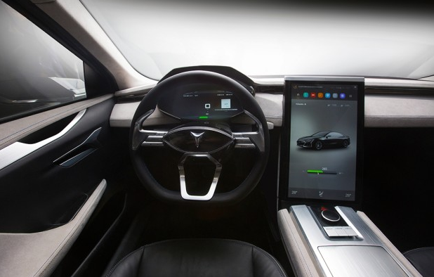 在内饰方面,新车内部造型非常简洁,仪表盘采用10.2英寸全液晶屏打造,中控台配备有17.3英寸1080P高清中控屏幕,这两个屏幕也可以根据用户的需求改变不同的颜色。除此之外,新车内部座椅和操控台分别采用Nappa皮革和Alcantara面料进行搭配。