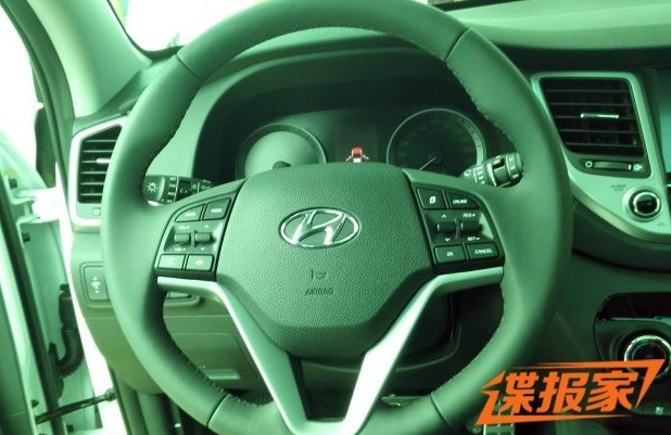 在内饰方面,整体较为简洁;从内饰实车图可以看出,全新途胜车内整体采用了深色的配色,并在空调出风口以及方向盘等部位点缀有银色饰板。从中控台的设计来看,新车与ix25内部保持了类似的功能分区,其中该车在中控台中央装配了多媒体显示屏,空调出风口位于两侧,向下依次为空调控制区以及点烟器等。相信之前车迷们抱怨的略显粗糙的做工方面或有较大的改进。