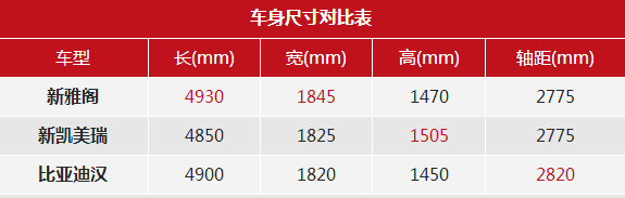 在车身尺寸方面,车身尺寸方面,新车的长宽高分别为4900/1820/1450mm,轴距为2820mm。从尺寸数据上来看,轴距比雅阁和凯美瑞还要再大一些。