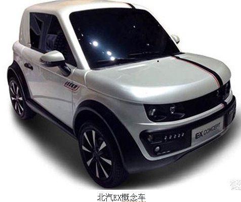2015上海车展上,北汽新能源还发布了EX概念车,概念车长宽高分别为2880/1560/1450mm,轴距为1850mm。动力来源于一台电动机,最大功率70kW(95PS),最大扭矩145Nm。值得一体的是,该车采用了全铝车身打造。